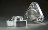 Benchmade Knife Co. folding knives displayed on rusted gears.