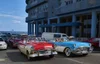 Vintage taxis filled with tourists in Havana, Cuba.