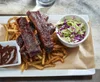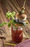 Bloody Mary with buffalo slider, pickle and celery garnish.