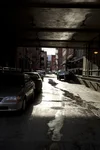 Collection of kayaks leaning on a brick wall near outdoor sports shop signage in southwestern Colorado.