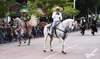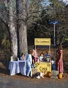 Woman kneels to help youngster at the Highland Festival in Estes Park, Colorado.